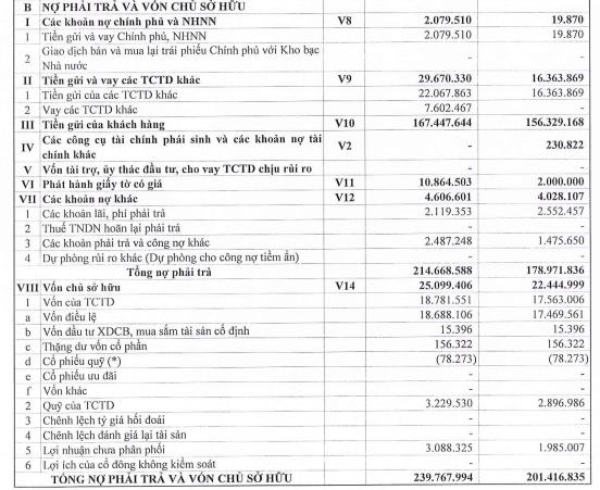 Tiền gửi của khách hàng tăng 7% so với đầu năm lên 167.447 tỷ đồng.