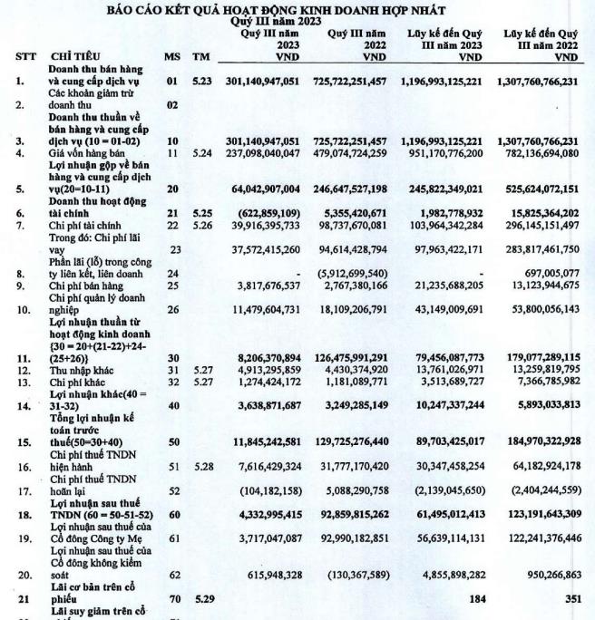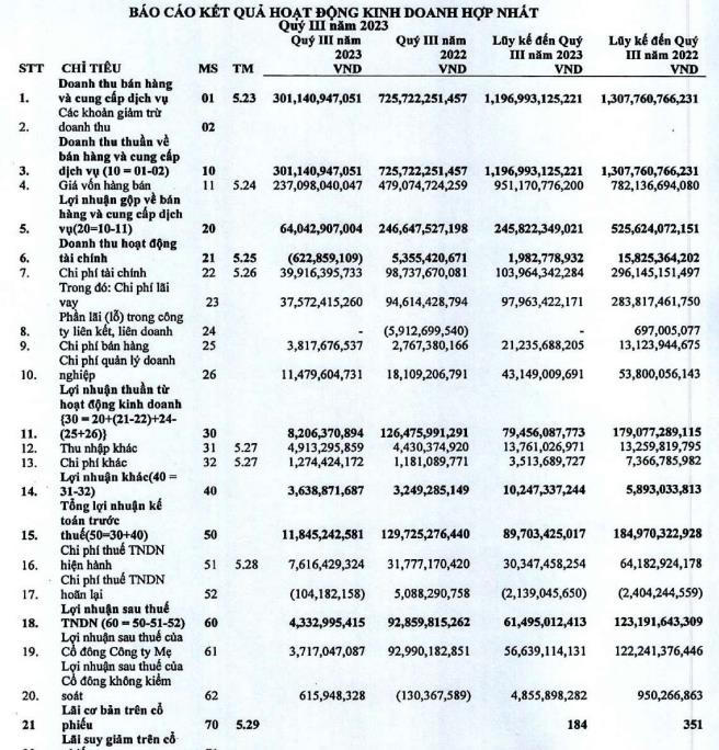 Về kết quả kinh doanh, lũy kế 9 tháng đầu năm, HPX ghi nhận doanh thu thuần đạt 1.196 tỷ đồng, giảm 8,4% so với cùng kỳ năm ngoái. Lợi nhuận sau thuế đạt 61,4 tỷ đồng, giảm 50% so với cùng kỳ năm 2022.