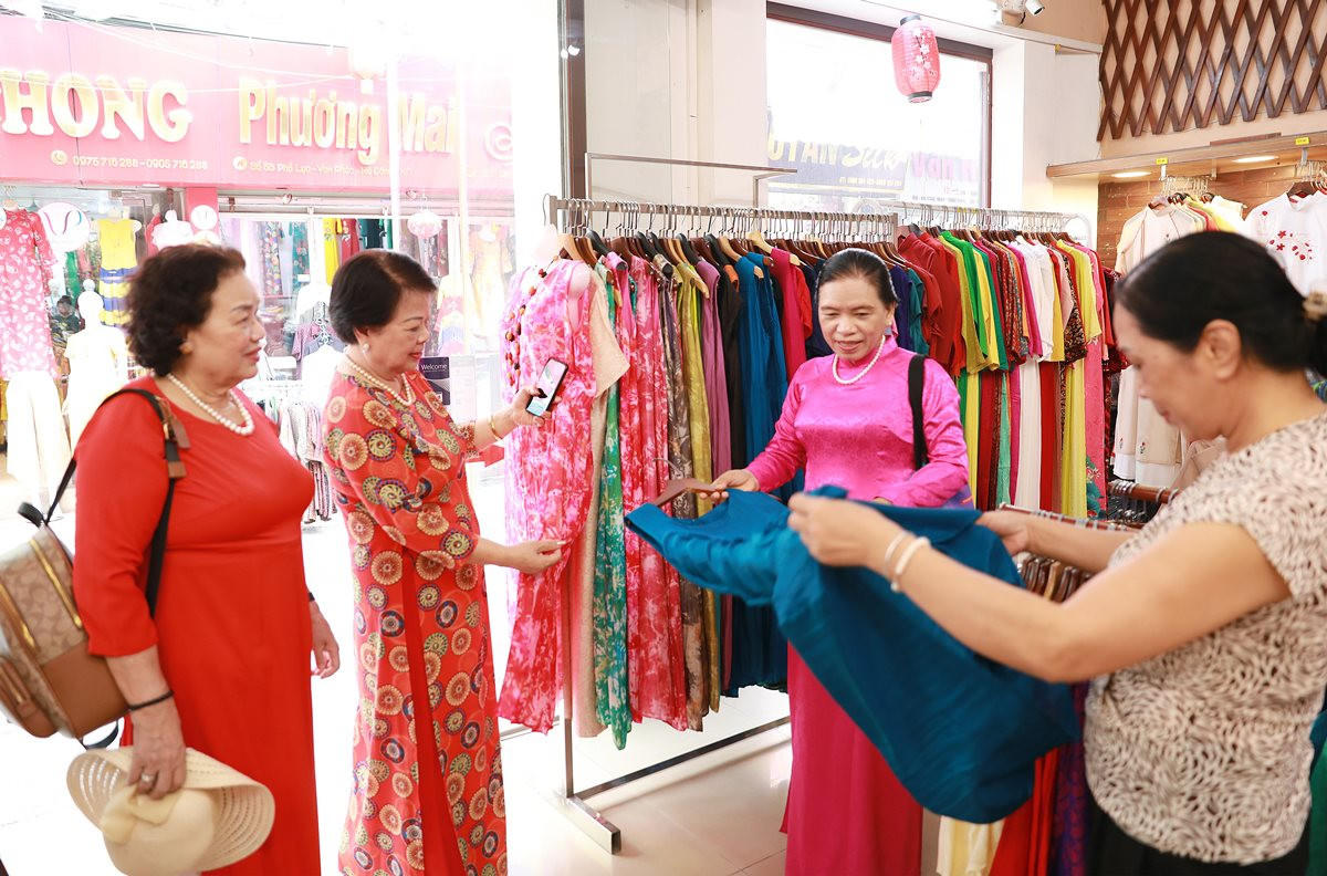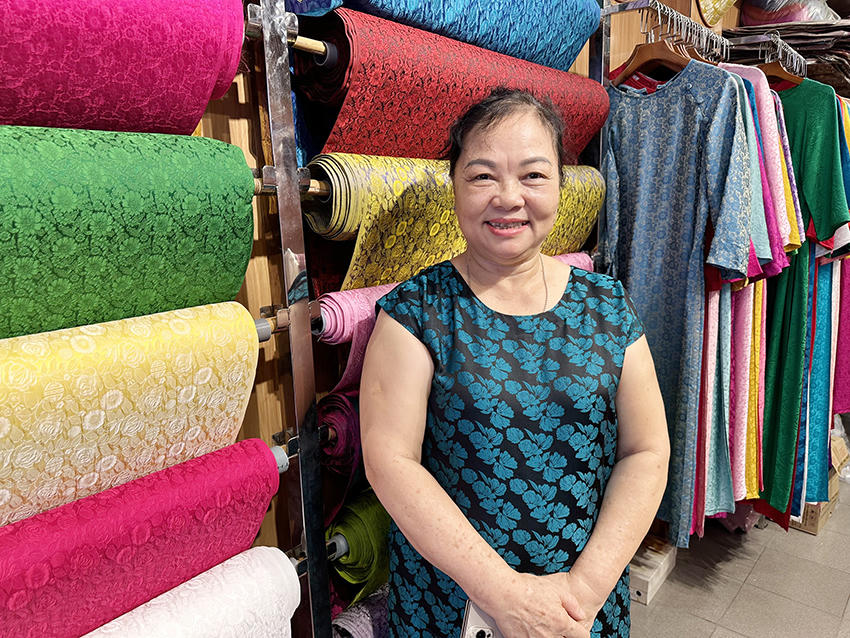 Sản phẩm có rất nhiều loại, tiền nào của ấy. Vì thế, chúng tôi phải tư vấn cho khách hiểu rõ các dòng sản phẩm, chất lượng như thế nào, giá cả ra sao? Nhờ uy tín và chăm sóc chu đáo, khách hàng vài chục năm vẫn quay trở lại cửa hàng, khách nước ngoài mua theo đoàn với số lượng lớn… Để có các mẫu mã phong phú, đa dạng, sản phẩm chất lượng… chúng tôi phải liên kết với nhiều mắt xích. Cụ thể: Liên kết vùng trồng nguyên liệu; Liên kết các nhà máy ươm ra tơ làm theo yêu cầu, đạt chất lượng; Liên kết với các nhà máy may đồ cho khách (may áo dài, âu phục, chuyên váy đầm…)”.