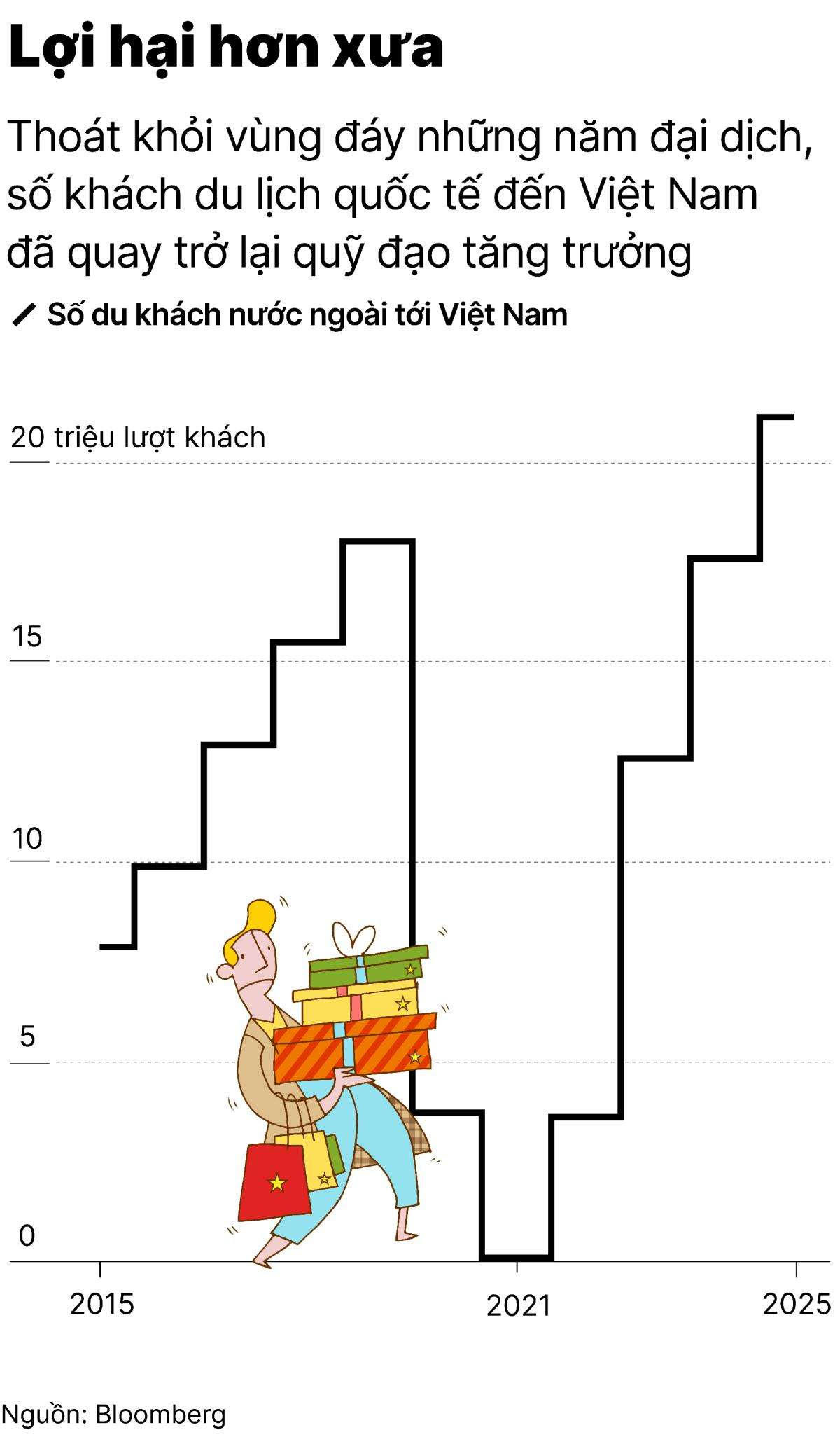 Ngành du lịch Việt Nam kết thúc năm 2025 với 21,1 triệu lượt khách quốc tế, mức tăng trưởng 20% so với 17,58 triệu lượt của năm 2024 và chính thức phá vỡ đỉnh điểm 18,01 triệu lượt thiết lập trước đại dịch. Báo cáo từ Tổ chức Du lịch Liên Hợp Quốc chỉ ra tỷ lệ tăng trưởng 20,4% của Việt Nam bỏ xa mức bình quân 4% trên toàn cầu cũng như 6% của khu vực châu Á - Thái Bình Dương. Dòng người khổng lồ này trực tiếp tạo ra lực tiêu dùng lớn cho phân khúc bán lẻ thời trang trong nước.