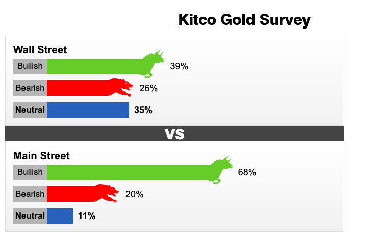 Khảo sát vàng mới nhất của Kitco News cho thấy các nhà đầu tư vẫn lạc quan về giá vàng trong thời gian tới, trong khi các chuyên gia phân tích có lập trường thận trọng hơn.