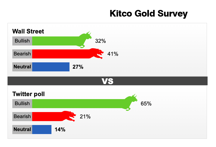 Khảo sát giá vàng mới nhất của Kitco News cho thấy, tâm lý giảm giá có một chút lợi thế giữa các nhà phân tích Phố Wall. Đồng thời, các nhà đầu tư bán lẻ vẫn lạc quan đáng kể và dự đoán kim loại quý sẽ lấy lại đà tăng sau khi giảm mạnh vào cuối tuần.