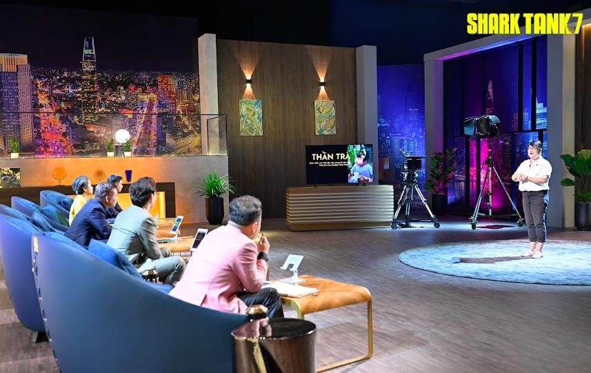Mở đầu bằng việc trình chiếu những tác phẩm điện ảnh “bom tấn” của điện ảnh Việt Nam như Cô Ba Sài Gòn, Mắt Biếc, Hai Phượng…, Kay Nguyễn (tên đầy đủ Nguyễn Lê Phương Khanh) - Nhà biên kịch, chủ dự án phim điện ảnh thiếu nhi Thần Trà khiến các “Cá mập” tò mò và thích thú khi xuất hiện.