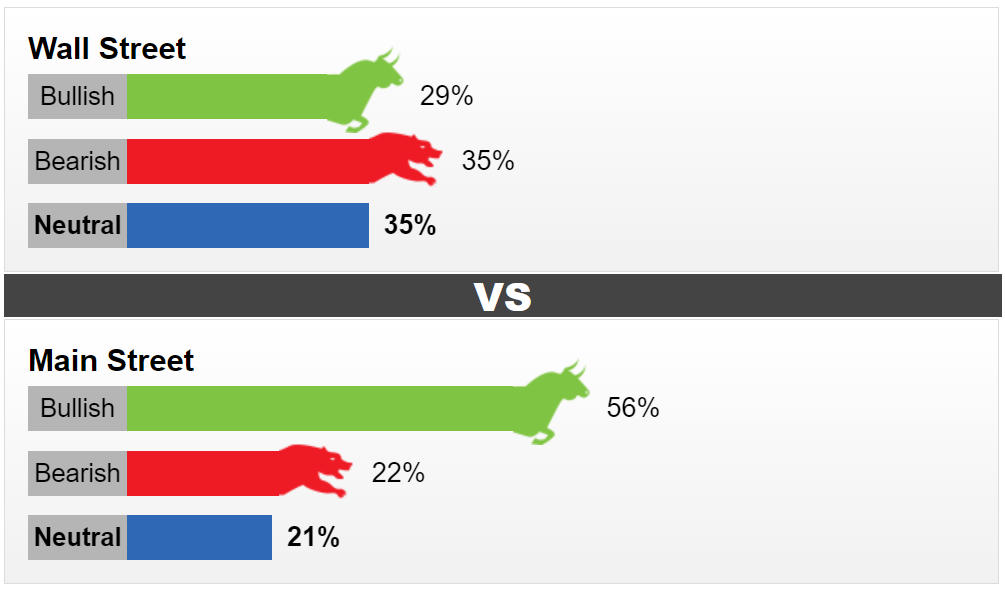 Trong khi đó, cuộc khảo sát trực tuyến trên Phố Main đã thu hút 683 nhà đầu tư nhỏ lẻ tham gia. Kết quả là, có tổng cộng 385 người (chiếm 56%) tự tin vàng sẽ tăng giá, 152 người (tương đương 22%) quả quyết giá kim loại quý sẽ giảm và 146 nhà đầu tư còn lại đưa ý kiến trung lập.