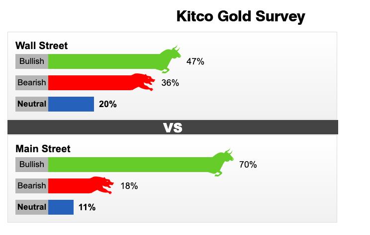 Trong số 15 nhà phân tích phố Wall tham gia cuộc khảo sát giá vàng của Kitco News, có 7 chuyên gia (chiếm 47%) tin tưởng giá vàng sẽ tiếp đà tăng. 5 nhà phân tích khác nhận định giá kim loại quý sẽ giảm và 3 người còn lại (tương đương 20%) đưa ý kiến trung lập.