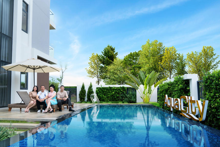 Khi những tia nắng đầu ngày len qua tán cây ùa vào nhà từ khung cửa kính, cũng là lúc cư dân Aqua City đón tầng xanh đầu tiên với không gian sân vườn thơ mộng. Chú trọng tính kết nối thiên nhiên, mỗi ngôi nhà tại Aqua City đều được bố trí khoảng sân vườn, tiểu cảnh, hồ bơi xanh mát, không chỉ đề cao tính thẩm mỹ mà còn tạo nên sự thoáng đãng trong không gian sống.