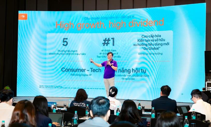Tại sự kiện, ông Thắng cũng đưa ra bản phân tích so sánh với các đối thủ trong khu vực Đông Nam Á. Hiện 16 công ty FMCG đạt vốn hóa trên 1 tỷ USD, nhưng chỉ 11 doanh nghiệp nằm trong nhóm dẫn đầu đa ngành hàng. Nếu xét tiêu chí tăng trưởng kép ba năm trên 10% (2022 - 2024), số lượng chỉ còn 4 doanh nghiệp. Khi thêm điều kiện biên lợi nhuận ròng trên 20%, Masan Consumer là doanh nghiệp duy nhất đáp ứng đồng thời cả ba tiêu chí.