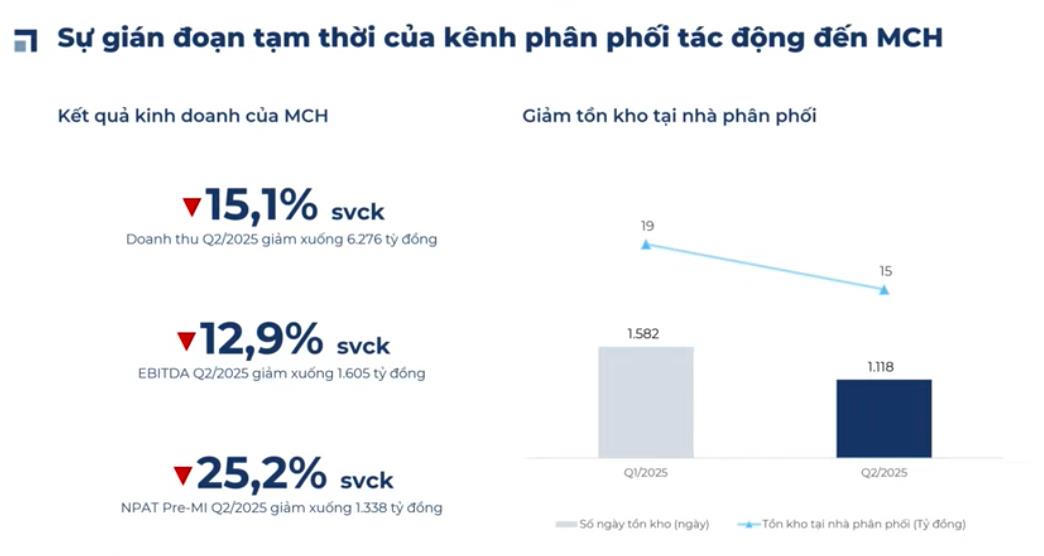 "Chính sách này khiến các hộ kinh doanh, nhà bán lẻ quyết định giảm lượng hàng tồn kho để phòng ngừa rủi ro. Chúng tôi ghi nhận số ngày tồn kho tại các nhà bán lẻ giảm mạnh, dẫn đến doanh thu của MCH hụt khoảng 600 - 700 tỷ đồng", ông Danny Le phân tích.