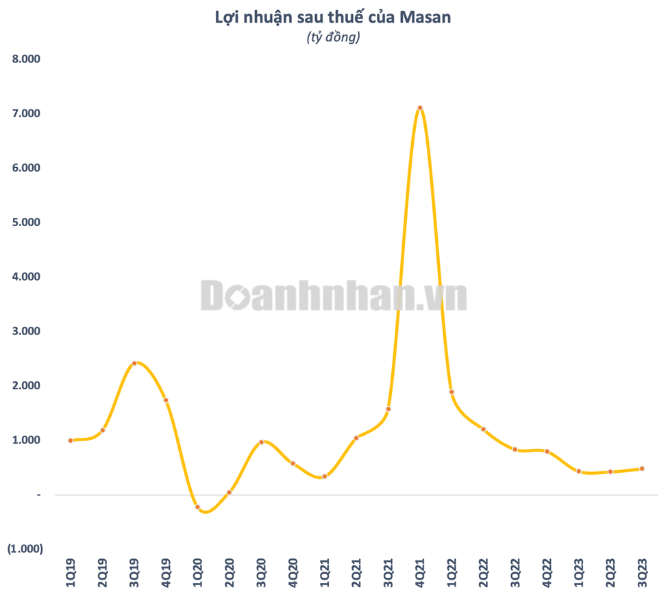 Về kết quả kinh doanh, báo cáo tài chính hợp nhất quý 3/2023 của Masan với doanh thu thuần đạt 20.155 tỷ đồng, tăng nhẹ hơn 3% so với cùng kỳ năm ngoái. Sau khi trừ giá vốn và chi phí, lợi nhuận sau thuế của tập đoàn này lại giảm 42% so với quý 3/2022, xuống còn gần 485 tỷ đồng.