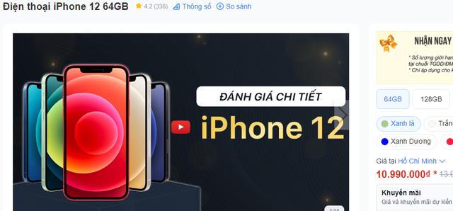 Theo đó, iPhone 12 128GB đang có giá 10,99 triệu đồng trong khi bản 64GB là 11,49 triệu đồng, ngoài ra, nếu tham gia thu cũ đổi mới có thể sở hữu iPhone 12 với mức giá dưới 10 triệu.