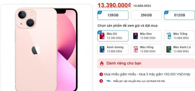 iPhone 13 hiện đang là một sự lựa chọn hấp dẫn cho một smartphone có trang bị và thiết kế không kém gì iPhone 15 mới. Trong đó, bản tiêu chuẩn của iPhone 13 hiện có giá chỉ hơn 13 triệu đồng một chút trong khi bản 256GB ở mức khoảng 16 triệu đồng.