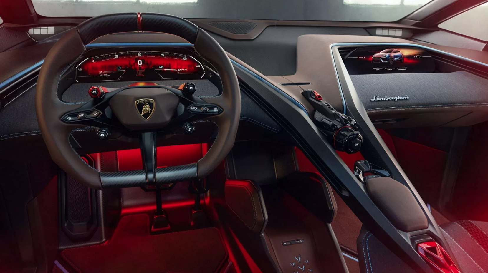 Trên táp lô là 2 màn hình ở cả ghế lái lẫn ghế phụ, dù được thiết kế với 4 chỗ ngồi nhưng chỉ là mẫu xe 2 cửa nên khoang khách phía sau khá chật chội. Tuy nhiên, vì là một chiếc Lamborghini nên toàn bộ ghế bên trong xe đều được thiết kế để ôm sát người ngồi.