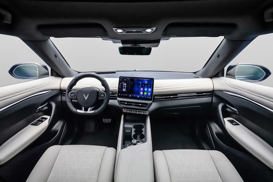 Bên cạnh đó, VinFast còn trang bị màn hình giải trí cảm ứng 12,9 inch, hệ thống hiển thị thông tin trên kính lái HUD, vô lăng D-cut phối hai màu cùng dàn phím bấm chuyển số, mang đến sự tiện lợi cho người sử dụng.
