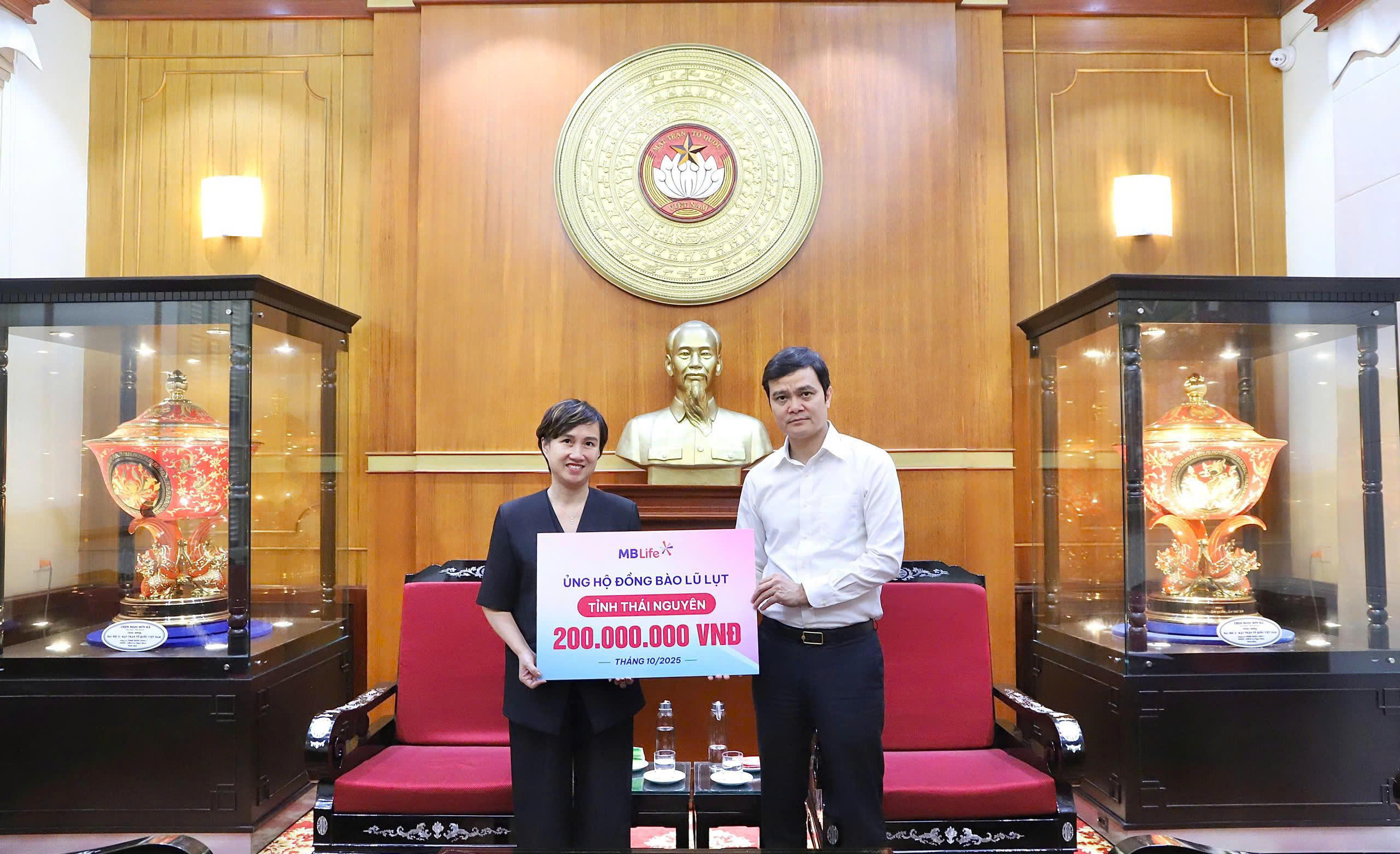 Hưởng ứng lời kêu gọi của Đảng, Nhà nước, Đoàn Trung ương Mặt trận Tổ quốc Việt Nam và MB Group, mới đây, tại trụ sở Ủy ban Trung ương Mặt trận Tổ quốc Việt Nam, đại diện MB Life, Bà Trần Thị An Phương - Giám đốc khối Nhân sự đã trao tặng số tiền 200.000.000 VNĐ ủng hộ trực tiếp người dân tỉnh Thái Nguyên bị thiệt hại do ảnh hưởng của cơn bão số 11 bão gây ra.