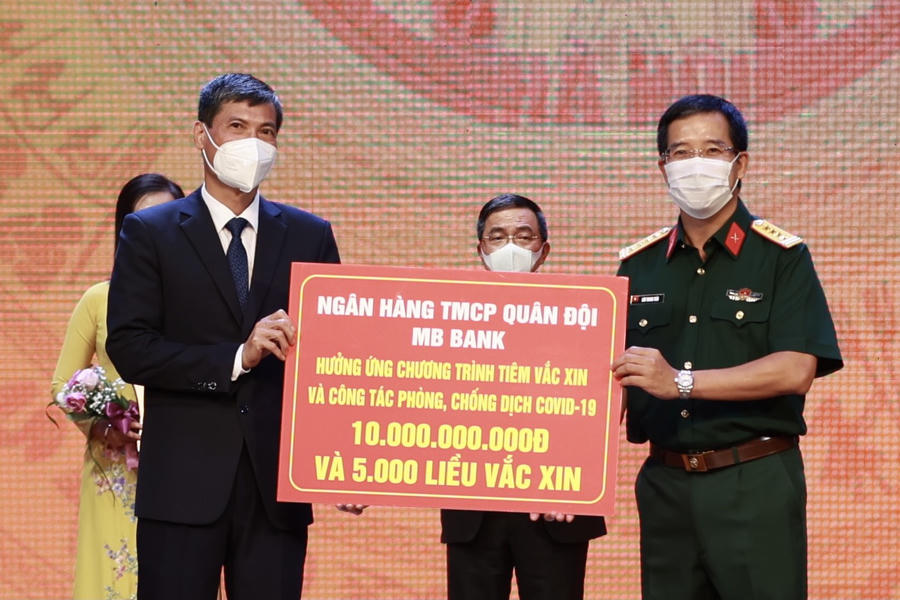 Ngày 19/06, tại chương trình “Hà Nội chung tay hành động đẩy lùi dịch Covid-19” do UBND và Uỷ ban Mặt trận Tổ quốc Việt Nam TP Hà Nội phát động, ông Lưu Trung Thái - Phó Chủ tịch Hội đồng Quản Trị, Tổng giám đốc MB đã trực tiếp trao tặng số tiền 10 tỷ đồng tới đại diện UBND TP Hà Nội và hưởng ứng chương trình đăng ký 5.000 liều vắc xin Covid-19 cho CBNV.