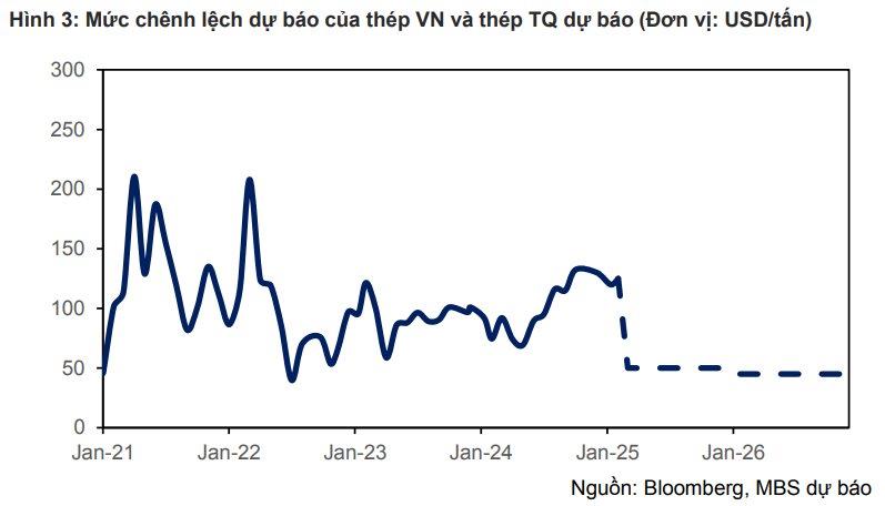 MBS dự báo giá bán và sản lượng HRC của Hòa Phát trong năm 2025 sẽ tăng lần lượt 8% và 47% so với cùng kỳ, nhờ đóng góp khoảng 1,4 triệu tấn từ Dung Quất 2. Việc áp thuế CBPG trùng với thời điểm Dung Quất 2 đi vào hoạt động được kỳ vọng sẽ tạo tác động tích cực đến sản lượng của Hòa Phát trong dài hạn.