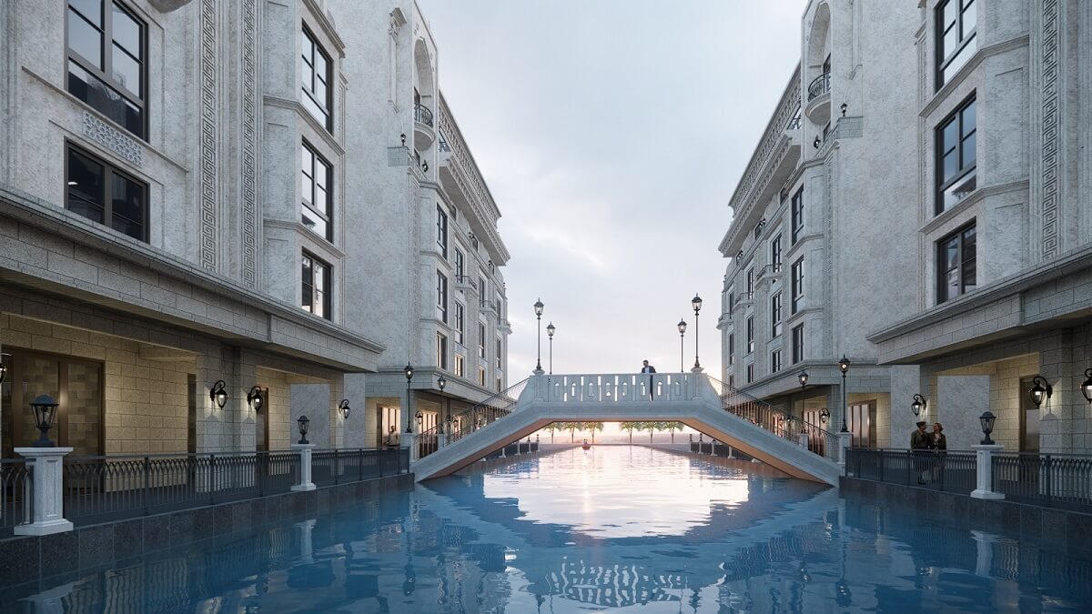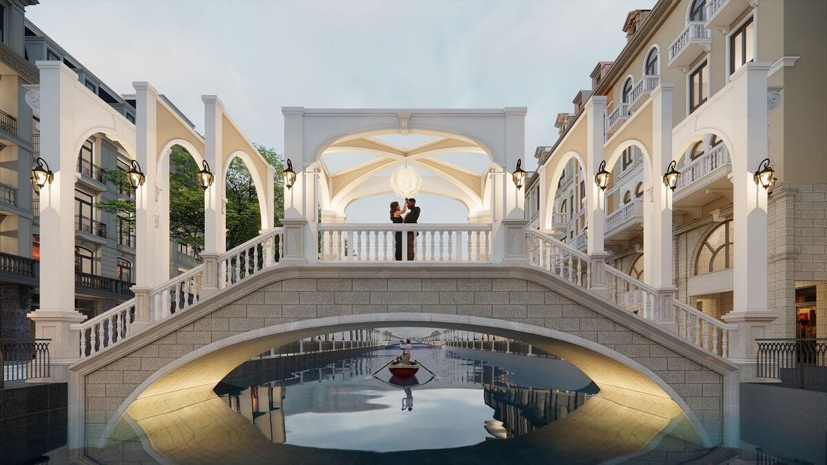 Nước Pháp đặc trưng bởi kiến trúc cổ điển và tư tưởng lãng mạn. Các cầu trên trục Pháp tại MerryLand Quy Nhơn được thiết kế ngôn ngữ cổ điển sang trọng kết hợp với các điêu khắc ấn tượng, kinh điển trong nghệ thuật Pháp.