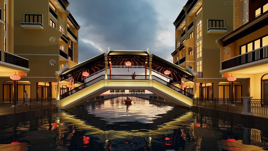 Không chỉ đưa du khách băng qua những nền văn hóa nổi tiếng trên thế giới, tại MerryLand Quy Nhơn, du khách còn chìm đắm trong không gian bình yên và cổ kính của những khu phố thương mại phồn hoa đô hội của Việt Nam. Ngồi trên con thuyền gondola từ từ rẽ nước, ngắm nhìn cây cầu Phồn Hoa bắc qua dòng kênh êm ả, du khách sẽ có cảm giác như mình đang lướt nhẹ trên sông Hội An, lạc vào thiên đường nơi thành phố cổ đẹp hàng đầu châu Á vậy!