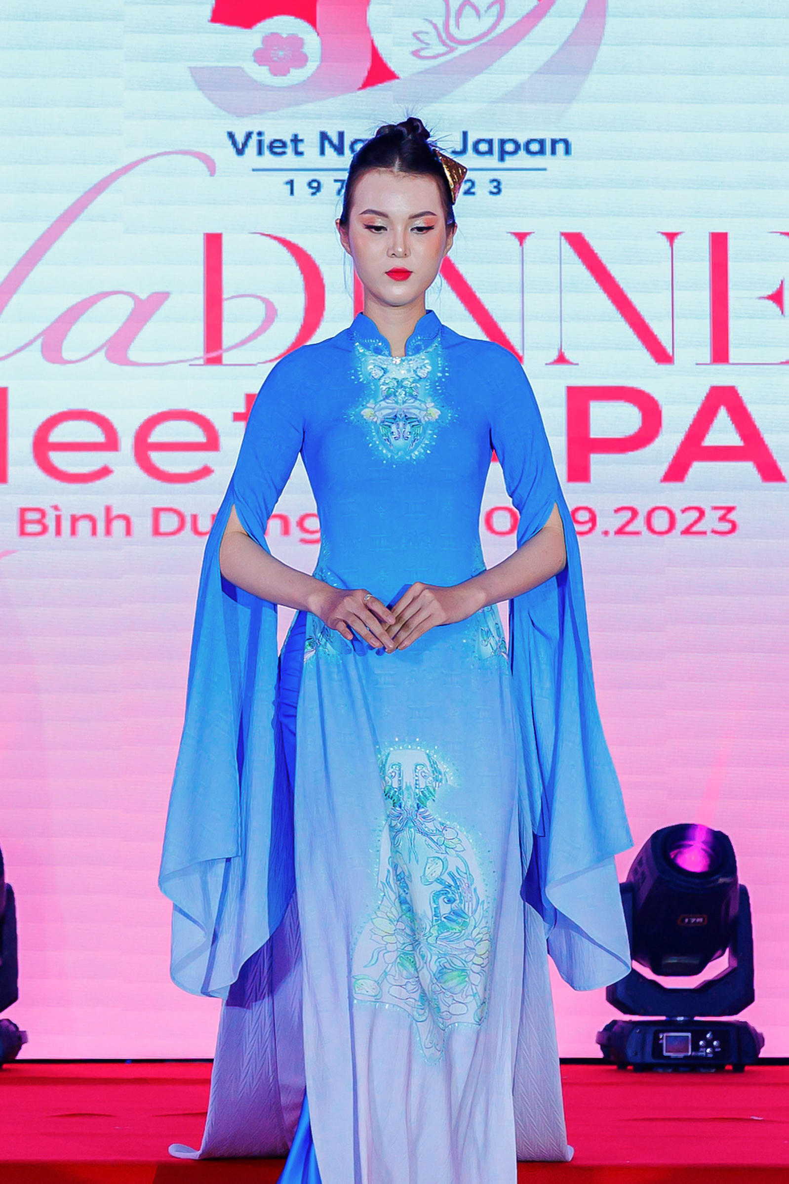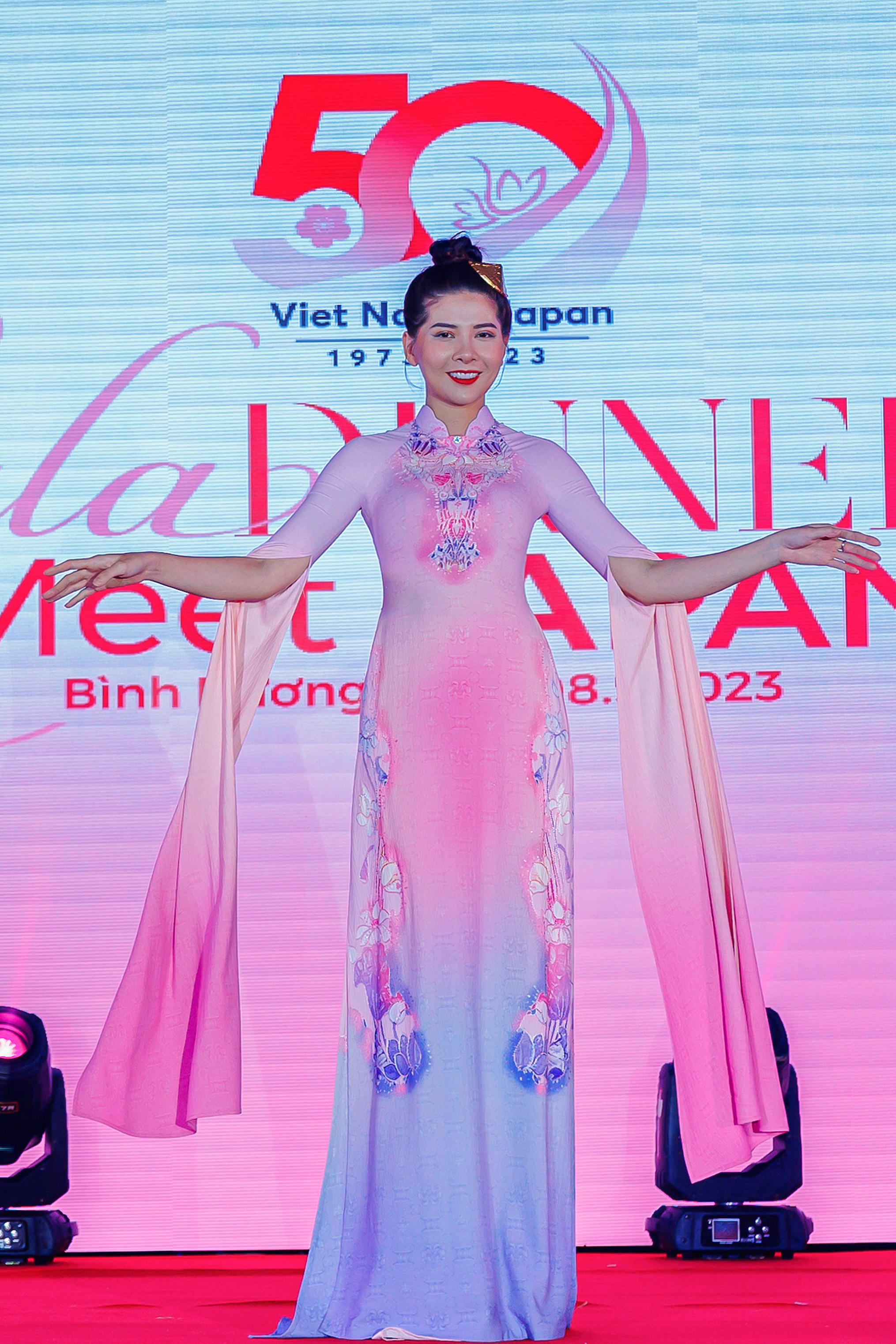 Trong khuôn khổ chương trình chào mừng kỷ niệm 50 năm thiết lập quan hệ ngoại giao hai nước Việt Nam – Nhật Bản, những tà áo dài của NTK Đỗ Trịnh Hoài Nam đã được trình diễn tại Bình Dương.
