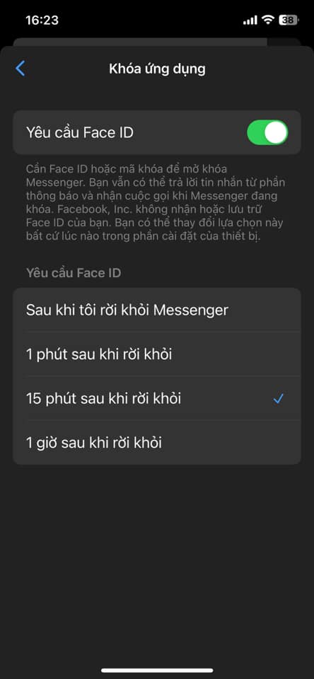 Khi bật tính năng này, người dùng phải có mã PIN hoặc FaceID mới có thể vào được Messenger.