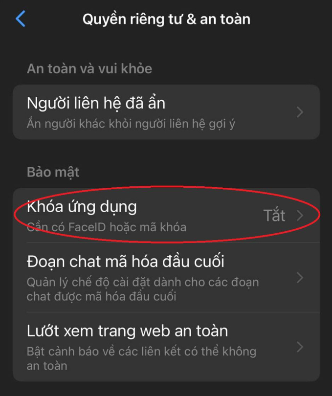 Để bật tính năng này trong Messenger, người dùng chọn thanh công cụ ở góc trái phía trên màn hình => Nút răng cưa Cài đặt => Chọn Quyền riêng tư & an toàn => Khóa ứng dụng => Bật.