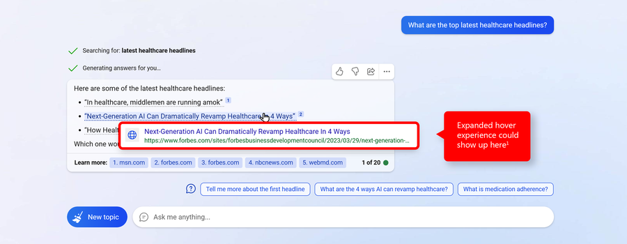 Liên quan tới vấn đề tác quyền trực tuyến, Yusuf Mehdi cho hay Microsoft cũng đang phát triển cách thức để trí tuệ nhân tạo hiển thị nguồn thông tin, nguồn nội dung được AI sử dụng như các công cụ tìm kiếm truyền thống.
