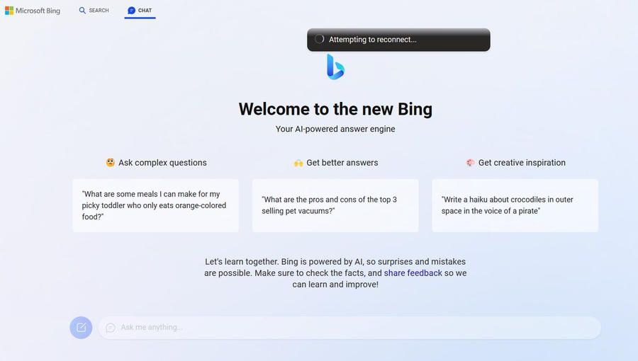 Công cụ tìm kiếm Bing của Microsoft trong khoảng thời gian ngắn đã cho phép người dùng trải nghiệm với chatbot trí tuệ nhân tạo kèm theo những cảnh báo về độ chính xác của AI.