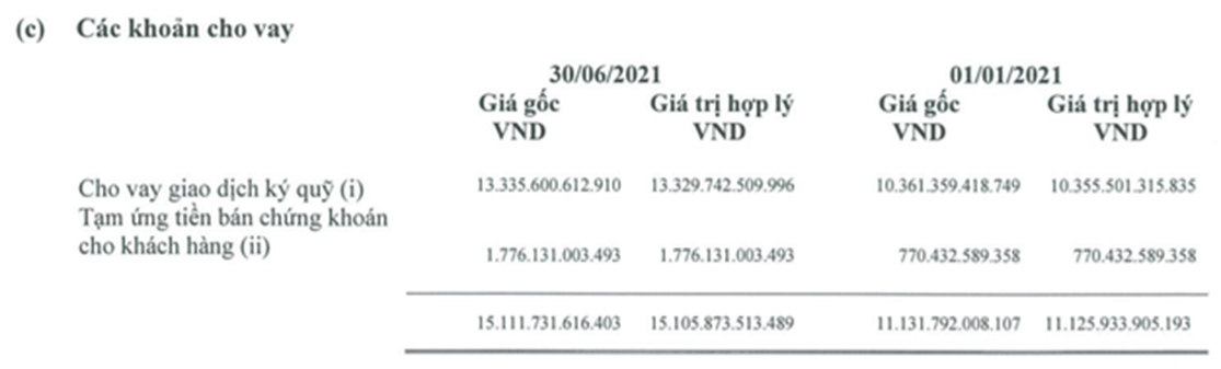 Thời điểm 30/6, dư nợ cho vay ký quỹ của Mirae Asset lên đến 13.336 tỷ đồng, tăng 28,7% so với đầu năm và tăng 11,3% so với cuối quý I/2021.