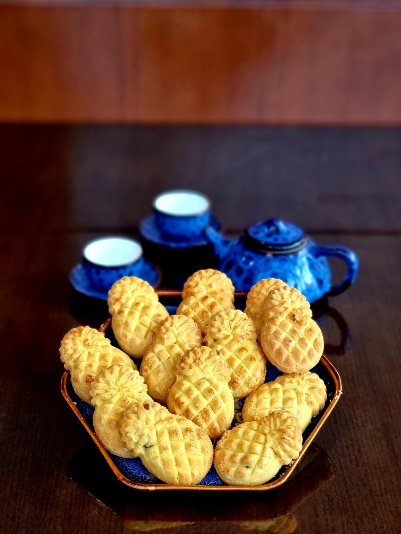 Món quà đột phá trong bộ sưu tập “Đón Xuân Phú Quý, Rước Lộc An Khang” năm nay chính là món bánh dứa thân thuộc mang dư vị sống động của đại diện trái cây miền nhiệt đới. Những chiếc bánh dứa thơm bùi được tạo hình đẹp mắt, nướng vàng quyện mùi bơ. Phần vỏ mềm tan ngay trên đầu lưỡi mỗi khi thưởng thức. Nét độc đáo nhất chính là nhân dứa chua ngọt, dẻo mềm quyến luyến vị giác mãi không thôi. Nhâm nhi miếng bánh nướng lừng, mềm tan và đậm đà hương vị nhiệt đới, nhấp tách trà ấm nóng... bên người thân trong những ngày đầu xuân se lạnh… gợi lại cho thực khách chuỗi ký ức tươi đẹp về những ngày xuân đầy dung dị và hoài niệm.