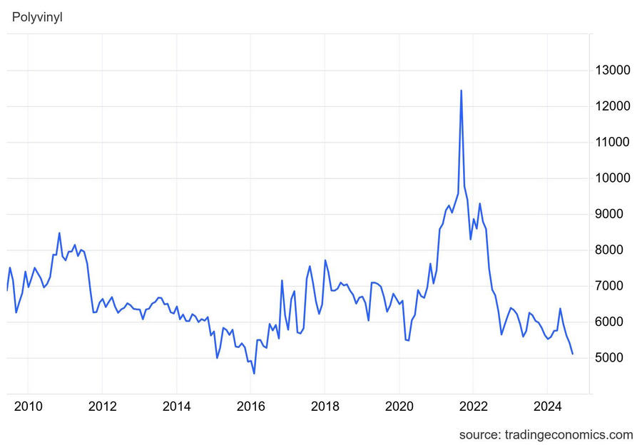 Cổ phiếu BMP tăng mạnh trong bối cảnh giá hạt nhựa PVC - nguyên liệu đầu vào có ảnh hưởng trực tiếp đến kết quả kinh doanh của Nhựa Bình Minh lao dốc mạnh. Theo tradingeconomics, giá hợp đồng tương lai PVC chỉ còn khoảng 5.100 CNY/tấn, mức thấp nhất trong 8 năm kể từ năm 2016. Điều này tạo cơ hội cho Nhựa Bình Minh duy trì biên lãi gộp ở mức cao trong thời gian tới.