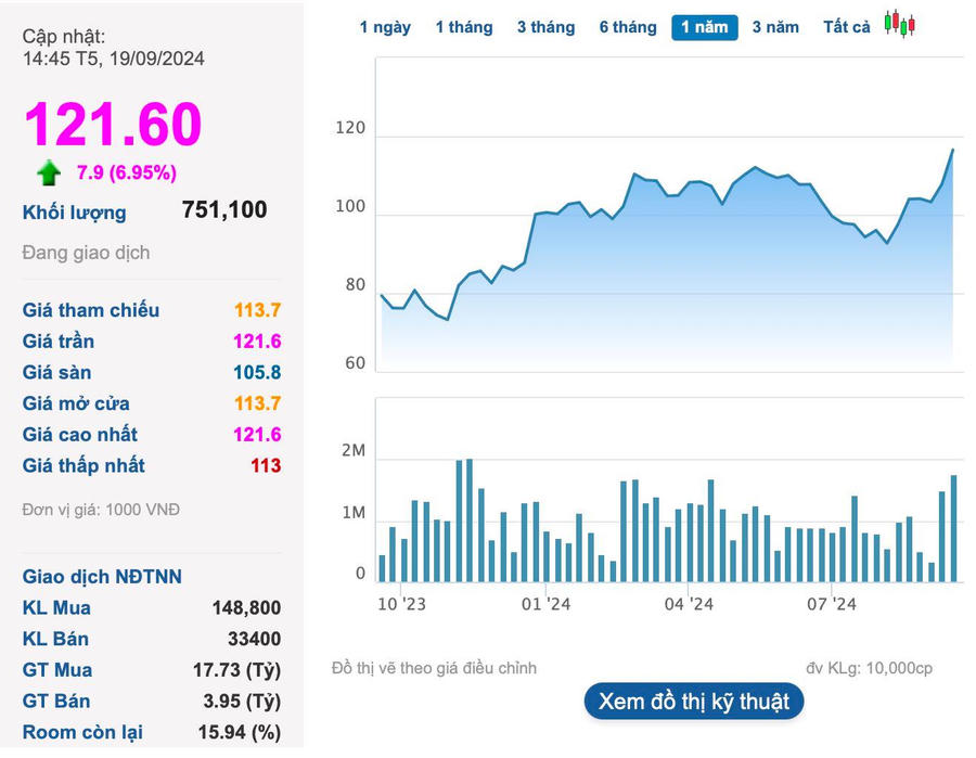 Vốn hóa thị trường của doanh nghiệp này vừa tăng vọt lên xấp xỉ 10.000 tỷ đồng, mức kỷ lục kể từ khi niêm yết năm 2006.