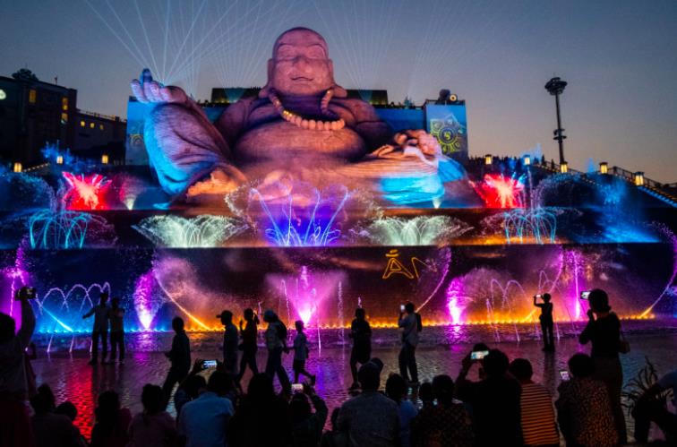 20h: Xem show nhạc nước tại khu vực tôn tượng Bồ Tát Di Lặc