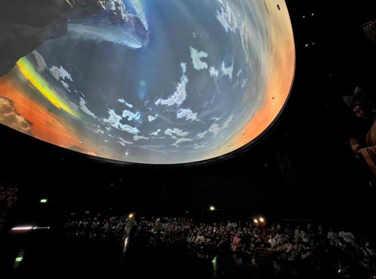 Tại tầng 1, trải nghiệm không thể bỏ qua là xem phim 3D mapping về sự hình thành của vũ trụ dưới lăng kính Phật giáo trên màn hình mái vòm có đường kính 20 mét ứng dụng công nghệ hiện đại hàng đầu thế giới.