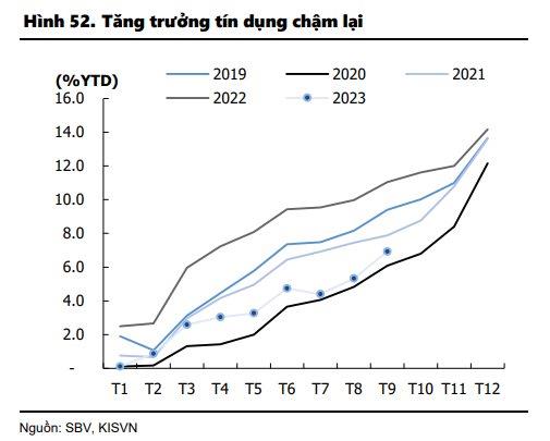 Đối với ngành Ngân hàng , KIS đánh giá KQKD quý 3 có thể duy trì tích cực, song triển vọng quý 4/2023 không mấy sáng sủa do tăng trưởng tín dụng chậm chạp và NIM phục hồi chậm hơn dự kiến.