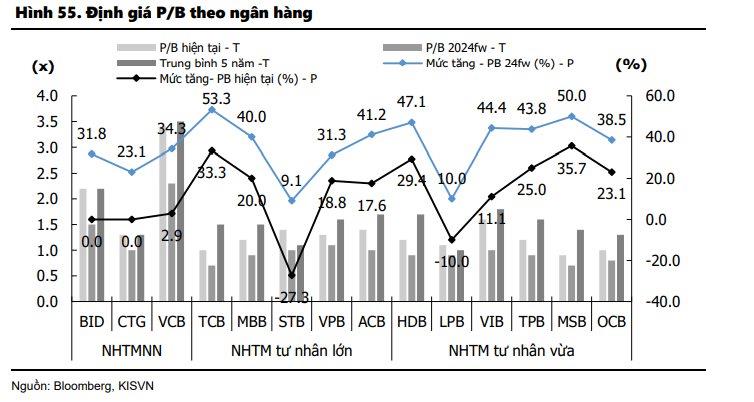 Theo đó, kỳ vọng KQKD của các ngân hàng sẽ cải thiện trong năm 2024. Triển vọng đầu tư trong ngành cũng hấp dẫn hơn nhờ vào (1) định giá thấp (2) những khó khăn dần vượt qua. Đà tăng giá cổ phiếu có thể theo sự tăng trưởng lợi nhuận Q3/2023 và các sự kiện riêng biệt của các ngân hàng.
