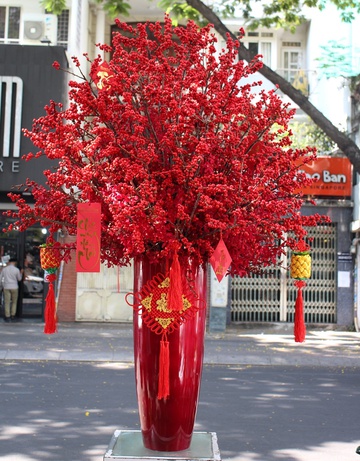 Bên cạnh lan hồ điệp thì những loại hoa cắt cành nhập có tone màu đỏ cũng rất hút khách dịp Tết năm nay, như đào sakura Nhật Bản, đông đào… có giá 350.000-450.000 đồng/cành.