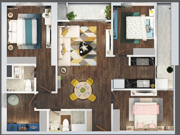 Cách thiết kế thông minh của căn hộ 4 phòng ngủ không chỉ giúp chủ nhân có không gian sinh hoạt hợp lý, tiện nghi mà còn đảm bảo được tính thẩm mỹ cao cho tổng thể kiến trúc công trình.