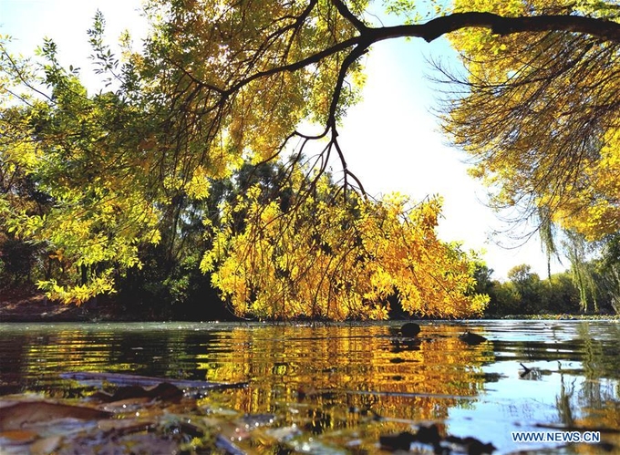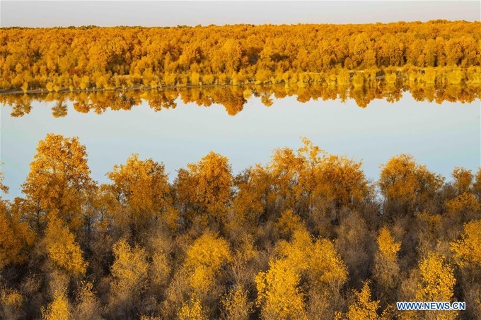 Rừng gỗ dương ở Tân Cương, vùng tự trị phía tây bắc Trung Quốc, đồng loạt chuyển màu lá vàng vào tháng 10/2020.