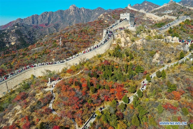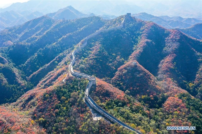 Khung cảnh Vạn Lý Trường Thành chụp ngày 24/10, những vạt rừng bao quanh kỳ quan thế giới đã đổi màu lá mang đậm không khí mùa thu.