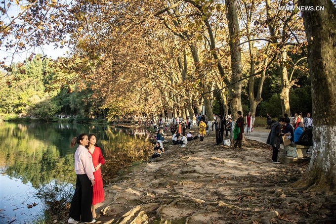 Du khách chụp hình ở Vườn quốc gia Huaxi ở Quý Dương, thủ phủ tỉnh Quý Châu, miền tây nam Trung Quốc vào ngày 25/10.