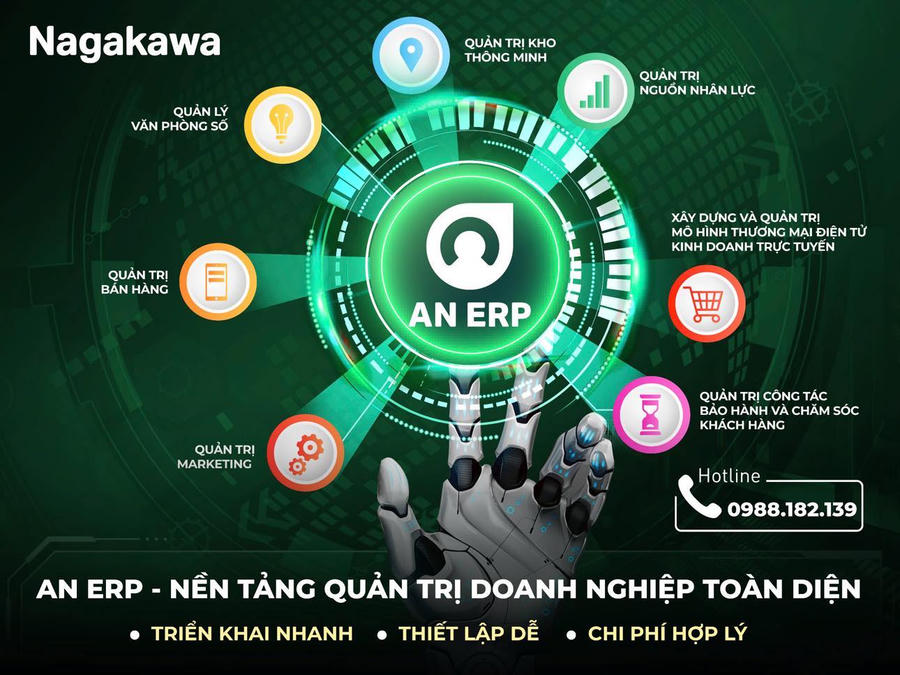 Thấu hiểu sâu sắc những nhu cầu của doanh nghiệp trong suốt hành trình chuyển đổi số, Tập đoàn Nagakawa ra mắt AN ERP - Giải pháp quản trị nguồn lực toàn diện đáp ứng 3 tiêu chí quan trọng giúp doanh nghiệp chuyển đổi số bền vững là: triển khai NHANH, Thiết lập DỄ và chi phí HỢP LÝ.