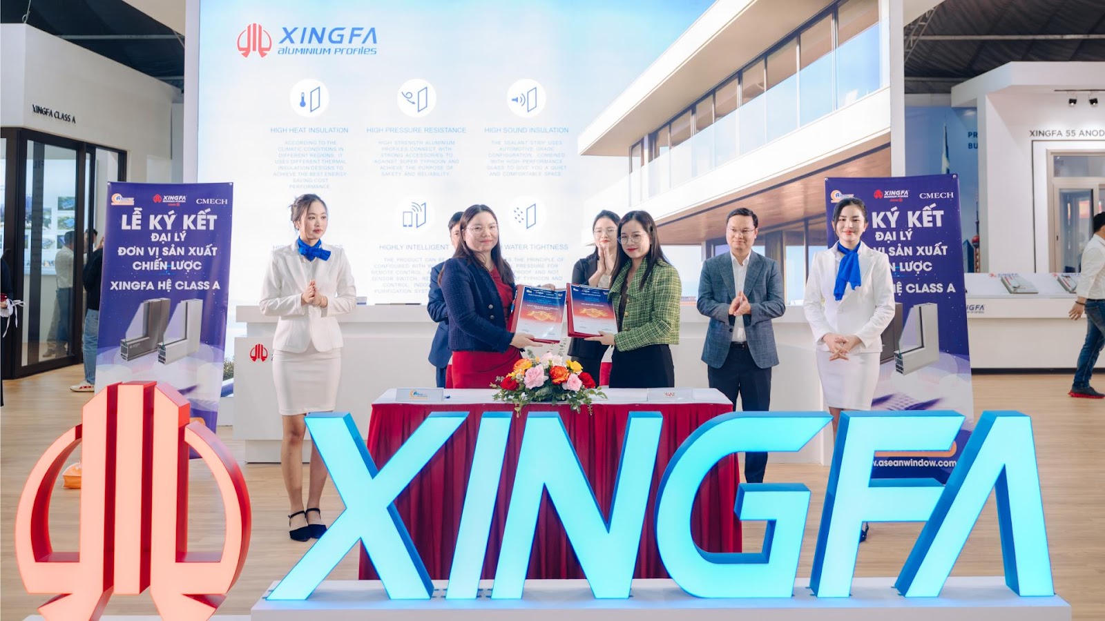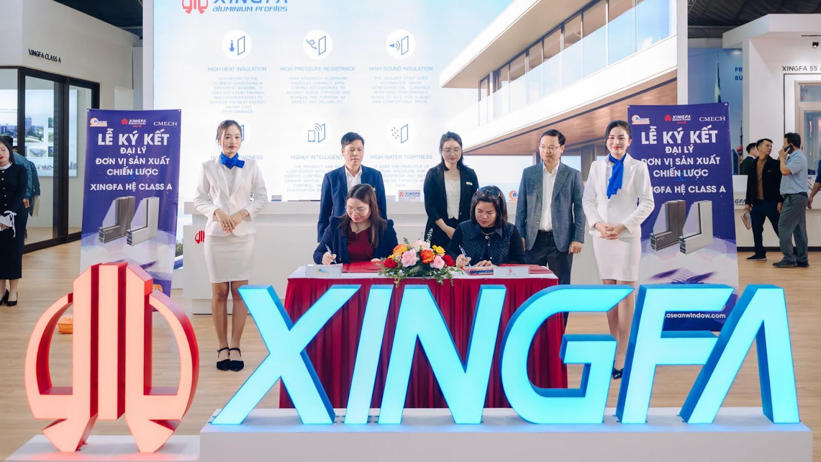 Các đơn vị sản xuất là “cánh tay nối dài” đưa profile Xingfa hệ Class A gần hơn, lan rộng hơn, đến trực tiếp khách hàng. Ngày 21/3/2024, tại gian hàng Xingfa Quảng Đông, AseanWindow tổ chức Lễ ký kết đại lý – Đơn vị sản xuất chiến lược Xingfa hệ Class A với các Đối tác Công ty Tùng Xuân, Vinh Lợi, Bình An Trang và công ty nhôm Quang Thịnh, tiếp tục khẳng định mối quan hệ hợp tác bền vững cùng phát triển giữa các bên.
