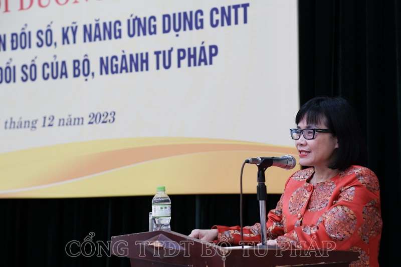 Phát biểu tại lớp bồi dưỡng, Thứ trưởng Đặng Hoàng Oanh cho biết, xác định Chuyển đổi số, ứng dụng công nghệ thông tin là nhiệm vụ chính trị quan trọng, ưu tiên của Bộ, ngành Tư pháp trong giai đoạn hiện nay, do đó, Ban Cán sự Đảng, Đảng ủy và Lãnh đạo Bộ luôn quan tâm lãnh đạo, chỉ đạo thực hiện tốt công tác này.