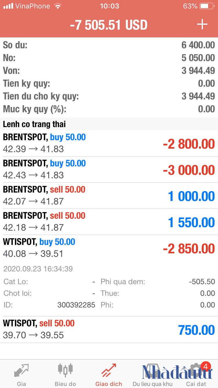 Ấy vậy mà, sau khi nộp tiền và làm thủ tục mở tài khoản xong xuôi, nhân viên hỗ trợ kỹ thuật lại tư vấn anh T.T các lệnh giao dịch mua/bán dầu Brent với lệnh lớn. Sau khoảng nửa tiếng đặt lệnh mua – bán liên tục, tài khoản của anh bị treo với lý do không đủ tiền để giao dịch. “Đến lúc kiểm tra lại thì "tài khoản đã bị âm tiền”, anh T.T nói.
