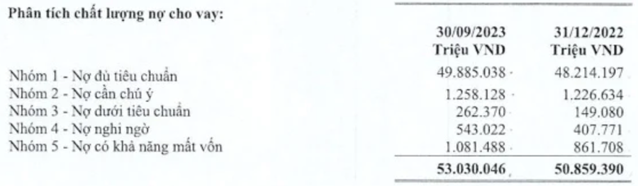 Cho vay khách hàng tại ngân hàng này tăng nhẹ 4% lên 53.030 tỷ đồng. Trong đó, đều là dư nợ cho vay khách hàng doanh nghiệp và khách hàng cá nhân, không có dư nợ trái phiếu doanh nghiệp. Tuy nhiên, chất lượng tín dụng của BVBank lại đang đi xuống rõ rệt.
