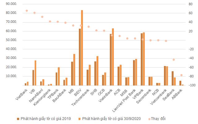 Ở chiều ngược lại, một số nhà băng có thể sử dụng tiền từ thị trường 2 trong lúc lãi suất thấp. Một số đơn vị nâng huy động từ kênh này có thể điểm tới như SeABank tăng 28% trong 9 tháng, MSB tăng 20%, VietinBank BIDV tăng 11-15%.