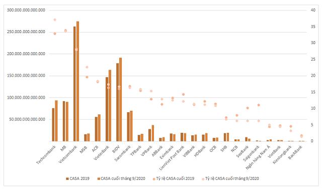 Tăng tỷ lệ CASA nằm trong chiến lược của nhiều ngân hàng. Techcombank đã sớm xác định mục tiêu này với chương trình “zero fee”, mục tiêu trở thành ngân hàng thanh toán. Trong buổi gặp mặt nhà đầu tư gần đây, lãnh đạo Techcombank tiếp tục đề cập đến định hướng này như một cách để tối ưu chi phí vốn. Trong 9 tháng, tỷ trọng CASA của Techcombank tăng hơn 4 điểm phần trăm.