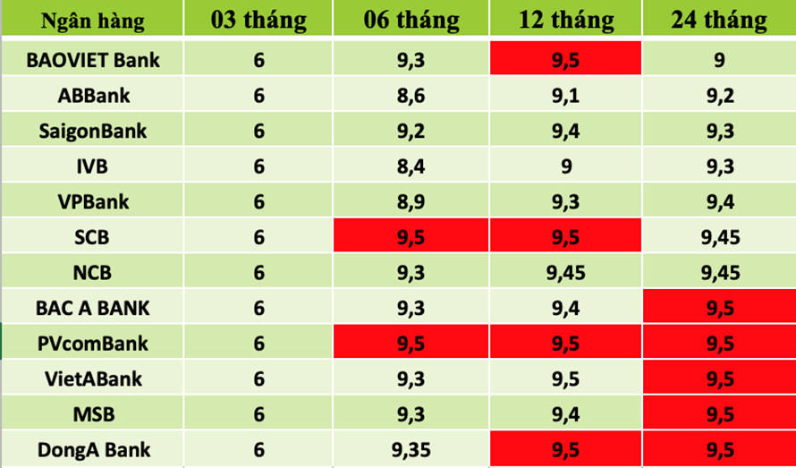 Mặt bằng lãi suất huy động tiền gửi khách hàng cá nhân của các ngân hàng trong nước đã giảm liên tục kể từ cuối năm 2022 đến nay. Tuy nhiên một số ngân hàng vẫn duy trì mức lãi suất ở mức xấp xỉ 9,5%/năm.