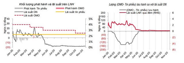 Trung tâm Phân tích Chứng khoán SSI - SSI Research vừa có báo cáo thị trường tiền tệ tuần 9-13/11, đề cập Ngân hàng Nhà nước chỉ mua kỳ hạn 1 tỷ đồng trên thị trường mở nhưng mua lượng lớn ngoại tệ từ các ngân hàng thương mại với giá trị tương đương khoảng hơn 30.000 tỷ đồng được bơm ra thị trường. Lãi suất trên liên ngân hàng vẫn duy trì ở mức 0,19%/năm với kỳ hạn qua đêm và 0,25%/năm với kỳ hạn 1 tuần.