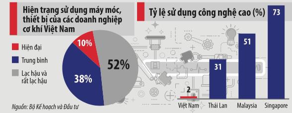 Mặc dù vậy, ngành cơ khí nội địa Việt Nam lại không có được nhiều thị phần của dung lượng thị trường này. Bên cạnh đó, điểm nghẽn cố hữu bấy lâu nay là từ năng lực của doanh nghiệp. Hiện nay, trình độ quản trị sản xuất, kinh doanh của các doanh nghiệp cơ khí Việt Nam đa phần còn thấp.